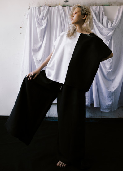 A coleção é pautada na coexistência de maneira diversa através da dualidade. As cores preto e branco se fazem presentes e representam o oriente e o ocidente. A dualidade se perpetua na coleção, onde uma das peças representa o fogo queimando essa linha de separação criada pela mente humana.