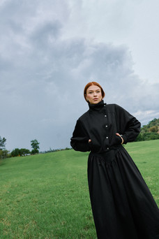 A paleta de cores aposta na atemporalidade do preto, branco, bege e off-white, permitindo que cada peça dialogue facilmente com diferentes estilos. Entre os destaques da cápsula estão os vestidos estruturados em cetim de algodão com brilho sutil, as jaquetas de design clássico e as peças leves em cupro, que garantem versatilidade e fluidez ao guarda-roupa feminino. Mas o grande protagonismo fica por conta das camisetas oversized estampadas com frases icônicas de Savana Sá, um manifesto visual de empoderamento e autoexpressão.