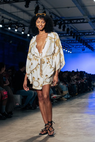 A coleção também apresentou acessórios exclusivos, como porta-fones, minibags e malas de viagem. O momento mais surpreendente foi o vestido composto por chaveiros de minichinelos, uma criação ousada que sintetizou a proposta de ousadia e irreverência.
